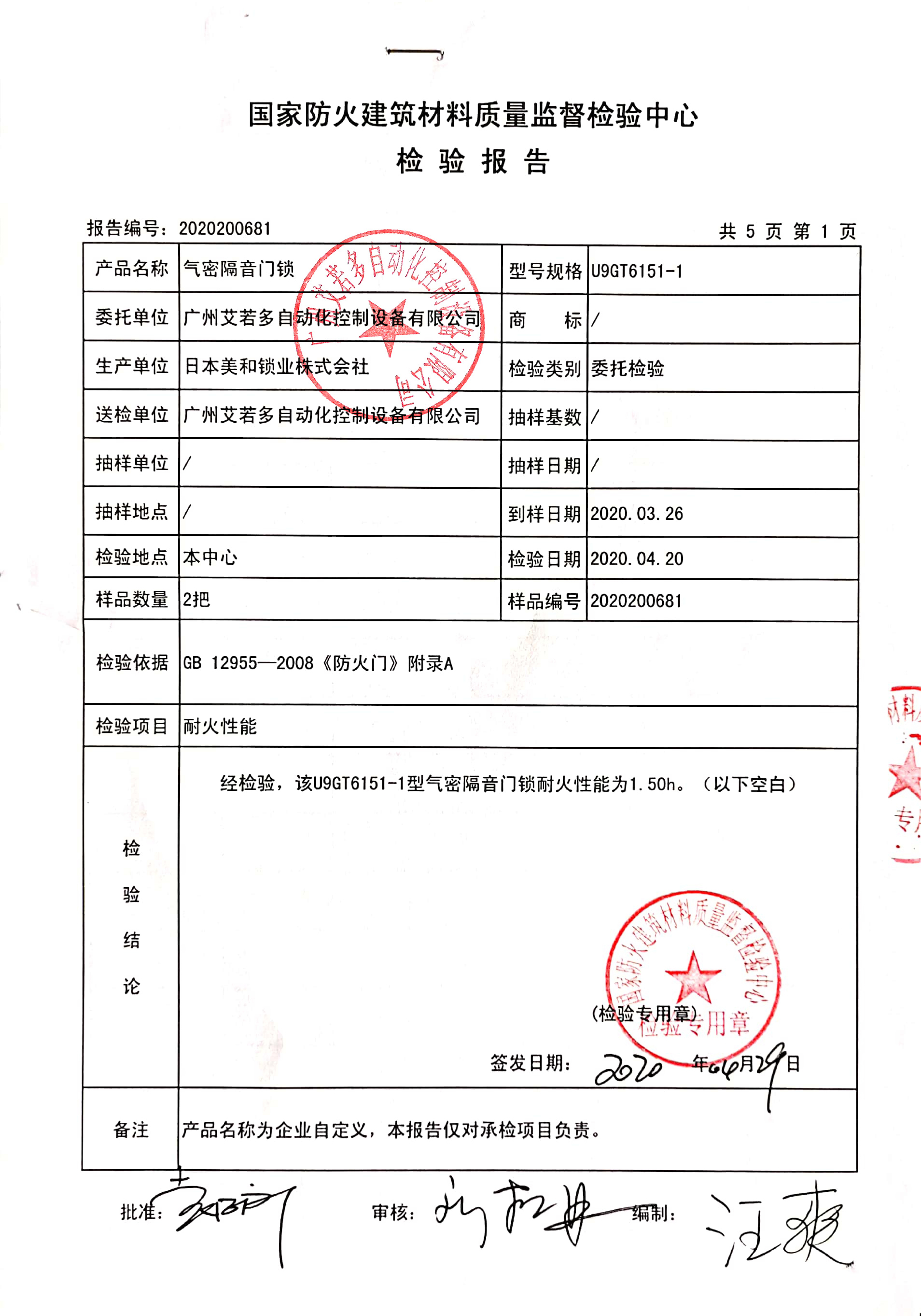 地氣密隔音門鎖防火檢測(cè)報(bào)告